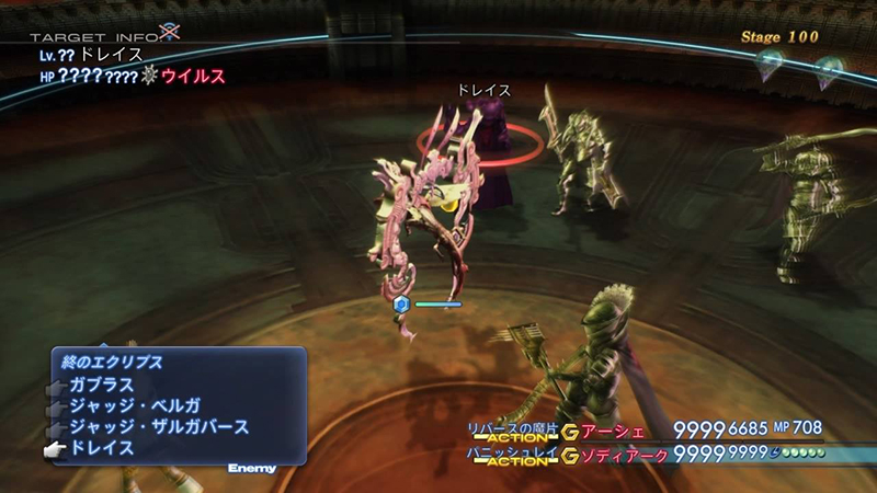 ギースとドレイスの減ったHP量はエリクサーで全回復されてしまいます。それを防ぐためにメテオライト(B)を投げるのもアリですが、前ステージ99でオメガからぐりぐりばんばんを盗めれば、リーダーに装備させて戦闘開始と同時にギース、ドレイスを攻撃して2人ともウイルス状態にすると良いでしょう。