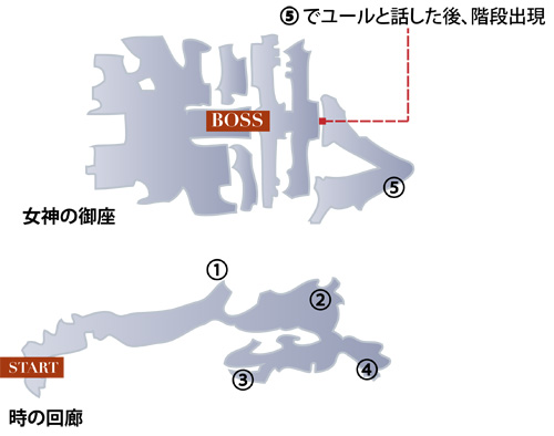2、⑤でユールに話しかけると、階段が出現し、女神の御座へ移動できるようになる。